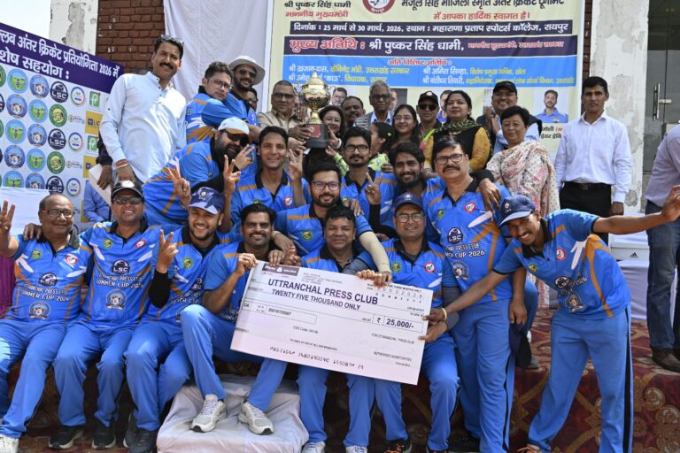 देहरादून। उत्तरांचल प्रेस क्लब द्वारा आयोजित द्वितीय मंजूल सिंह मांजिला स्मृति अंतर क्रिकेट प्रतियोगिता का फाइनल मुकाबला सोमवार को महाराणा प्रताप स्पोर्ट्स कॉलेज, रायपुर में खेला गया। रोमांचक मुकाबले में दून डेयर डेविल्स ने दून सुपर किंग्स को 6 विकेट से हराकर खिताब अपने नाम किया। आज का मैन ऑफ द मैच अरविंद रावत को…