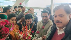 देहरादून। अखिल भारतीय कांग्रेस कमेटी की महासचिव एवं नव नियुक्त उत्तराखण्ड प्रदेश प्रभारी कुमारी शैलजा के देहरादून आगमन पर कांग्रेस कार्यकर्ताओं ने प्रदेश अध्यक्ष करन माहरा के नेतृत्व में भव्य स्वागत किया। इसके उपरान्त कुमारी शैलजा ने प्रदेश कार्यालय सभागार में पार्टी की विभिन्न समितियों की बैठक में आगामी कार्यक्रमों हेतु वरिष्ठ कांग्रेस नेताओं से चर्चा की। उपरोक्त जानकारी देते हुए प्रदेश कांग्रेस उपाध्यक्ष संगठन एवं प्रशासन मथुरादत्त जोशी ने बताया कि नव नियुक्त प्रदेश प्रभारी कुमारी शैलजा आज प्रातः 10ः00 बजे जौलीग्रान्ट एयरपोर्ट पहुंची जहां पर प्रदेश अध्यक्ष करन माहरा, नेता प्रतिपक्ष यशपाल आर्य, पूर्व मुख्यमंत्री हरीश रावत, एआईसीसी सचिव काजी निजुमद्दीन, पूर्व प्रदेश अध्यक्ष प्रीतम सिंह, पूर्व प्रदेश अध्यक्ष गणेश गोदियाल सहित पार्टी के विधायकगणों, पूर्व विधायकगणों एवं बडी संख्या में एयरपोर्ट पहुंचे कार्यकर्ताओं ने गर्म जोशी से स्वागत किया। इसके उपरान्त डोईवाला, हर्रावाला, रिस्पना पुल आदि अनेक स्थानों पर बडी संख्या में उमडे कांग्रेस कार्यकर्ताओं ने कुमारी शैलजा का स्वागत किया।