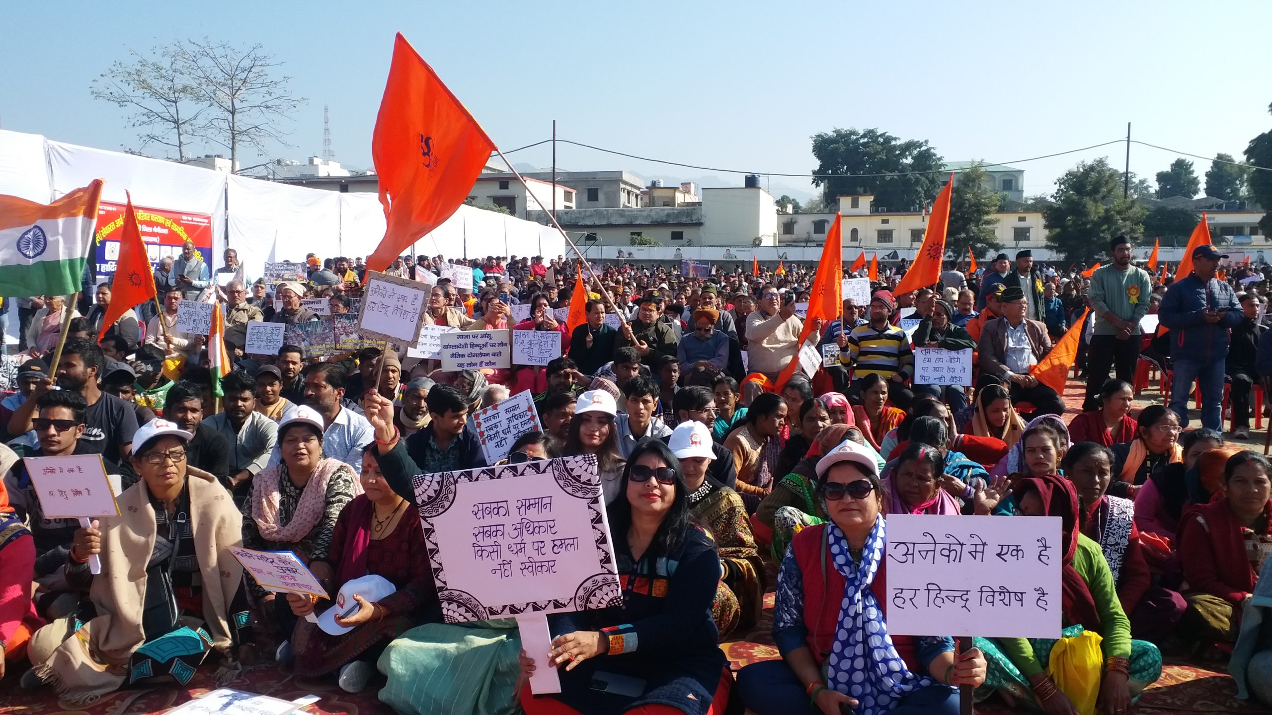 जनसभा में कुमाऊं मंडल के अलग-अलग जिलों से बड़ी संख्या में लोग पहुंचे थे। हिंदूवादी संगठनों के नेताओं ने अपने संबोधन में कहा कि बांग्लादेश में हिंदू, बौद्ध और अल्पसंख्यकों पर लगातार अत्याचार बढ़ता जा रहा है। बांग्लादेश में हिंदुओं के धार्मिक स्थलों को तोड़ा जा रहा है। धार्मिक स्थल सुरक्षित नहीं हैं। उन्होंने कहा कि जिस समय बांग्लादेश का विभाजन हुआ था, उस हिंदू और मुस्लिम बराबर थे, लेकिन आज बांग्लादेश में मात्र 6 प्रतिशत ही हिंदू रह गये हैं। बांग्लादेश में हिंदू बहन बेटियां सुरक्षित नहीं हैं। ऐसे में भारत सरकार को कोई कदम उठा लेना चाहिए, जिससे कि बांग्लादेश में हिंदू सुरक्षित रहें। जनसभा के बाद लोगों ने सड़क पर उतर कर भी प्रदर्शन किया। हिंदूवादी संगठनों के साथ-साथ स्थानीय लोग हल्द्वानी के एमबी इंटर कॉलेज प्रांगण से विशाल जुलूस के साथ बांग्लादेश के खिलाफ प्रदर्शन करते हुए सड़कों पर उतरे और जिलाधिकारी कैंप कार्यालय पहुंचे। जिलाधिकारी के माध्यम से राष्ट्रपति और प्रधानमंत्री को ज्ञापन भेजते हुए बांग्लादेश के खिलाफ कार्रवाई की मांग की है।