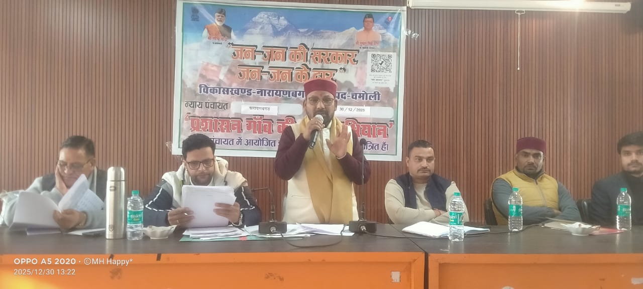 चमोली। विकासखण्ड नारायणबगड़ के सभागार में माननीय मुख्यमंत्री पुष्कर सिंह धामी की प्रेरणा से संचालित “जन-जन की सरकार, जन-जन के द्वार” (प्रशासन गाँव की ओर) अभियान कार्यक्रम का आयोजन किया गया। कार्यक्रम का शुभारंभ थराली विधानसभा के विधायक भूपाल राम टम्टा एवं राज्य मंत्री माननीय हरक सिंह नेगी द्वारा किया गया।